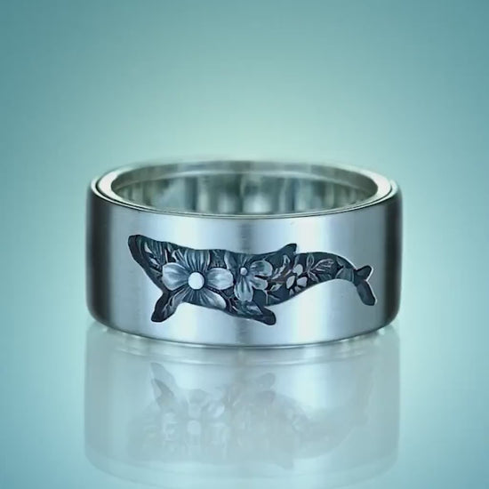 Kitsune & Whale Kinetic Spinner Ring - HANDCRAFTED STERLING SILVER